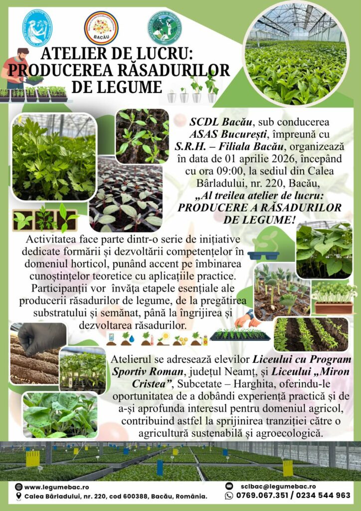 Al III lea Atelier de lucru PRODUCEREA RĂSADURILOR DE LEGUME Data când a avut loc: 01.04.2026 Nr. participanți: 87 Materiale publicate în data de 01.04.2026, facebook SCDL BACĂU, https://www.legumebac.ro Pe […]
