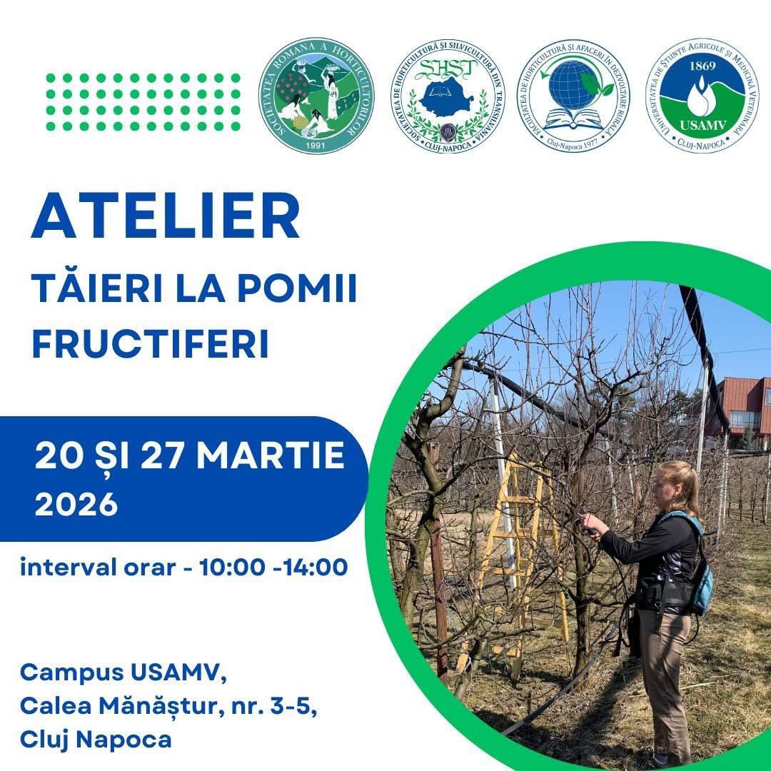 Societatea Română a Horticulturilor – Filiala Cluj, împreună cu USAMV Cluj-Napoca și partenerii săi, organizează un atelier practic de tăieri la pomii, adresat iubitorilor de pomicultură și tuturor celor care doresc să învețe tehnicile corecte de tăiere și formare a coroanei.